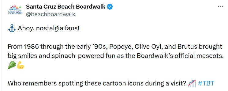Arts & CultureDid you know?You learn something new about Santa Cruz every day...The 831Mar 27, 20262ShareThis post was from the Santa Cruz Beach Boardwalk on ‘X’ yesterday:Photos Santa Cruz Beach BoardwalkThanks for reading! Subscribe for free to receive new posts and support our work.SubscribePreviousNext
